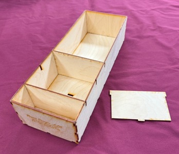 Card Tray 2.25" X 3.25" X 0.375" 3 Deck, Kit, (57mm X 82mm)A tray kit for 3 decks of cards with spaces that are 2.25" X 3.25" by 0.375" (9.5mm) tall. Assembly required, recommended tools to assemble the trays; hobby knife, sand paper and glue. The Kit card trays were an early design, there is a newer Flat Pack design below that replaces this design.  |